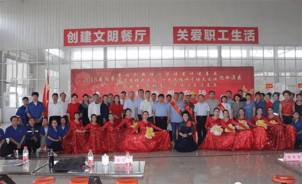 6月6日下午,安陽市黨的創(chuàng)新理論萬場宣講進基層、百名勞模大工匠?十九大精神千場大宣講暨“中國夢 勞動美”千場演出送基層巡回演出活動走進林州重機。河南省委宣傳部副部長尹書博,省委宣傳部理論處副處長楊小強,省委宣傳部理論教育講師團副團長趙琳,安陽市委宣傳部副部長冀曉東,安陽市委宣傳部理論科長龍晨曦,安陽市總工會宣教部部長張艾敏,林州市委常委、宣傳部長王獻青,林州市總工會主席栗旺生,副主席張曉云, 公司黨委副書記、副總經理趙正斌,黨委委員、工會主席路建存及職工代表300余人等出席活動。