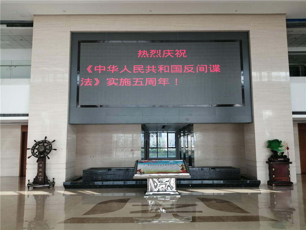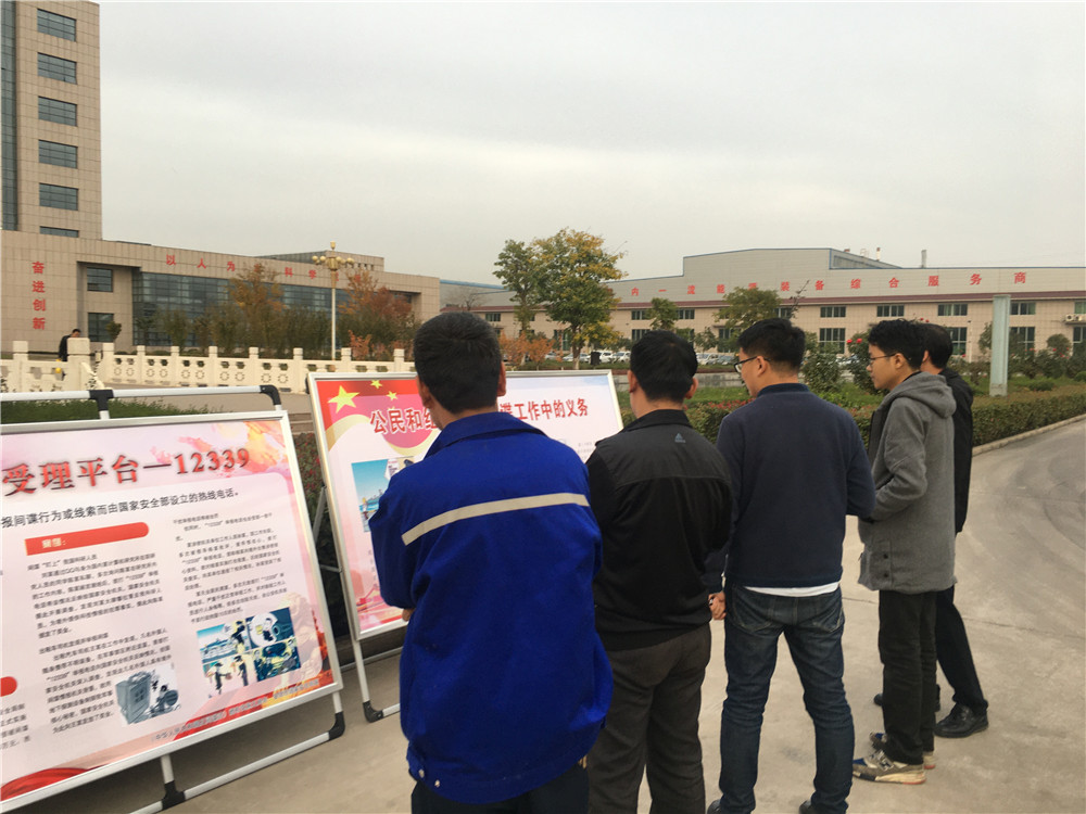 公司通過LED屏滾動播放宣傳標語,大門兩側(cè)懸掛橫幅標語,制作《反間諜法》宣傳版面,發(fā)放《反間諜法》宣傳彩頁700余份等多種形式的廣泛宣傳,營造了“國家安全,人人有責”的濃厚氛圍,進一步提高員工反間諜安全防范知識,使維護國家秘密,保護國家安全意識不斷加強。