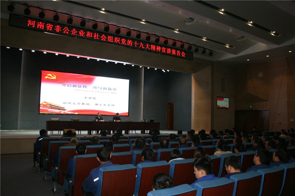 根據(jù)河南省委宣傳部、省委組織部安排部署,省非公企業(yè)和社會組織黨的十九大精神宣講報告會于12月11日下午在林州重機多功能廳舉行。省十九大精神宣講團成員、鄭州大學教授、博士生導師辛世俊作宣講報告,辛教授從八個方面對十九大報告深入淺出,通俗易懂闡述了報告精神實質和深刻內(nèi)涵。安陽市委宣傳部、市委組織部,林州市委宣傳部有關領導參加并聆聽了宣講報告。公司黨委書記郭現(xiàn)生及中高層領導,全體黨員及入黨積極分子,機關各部室管理人員及車間管理人員共300余人聽取宣講報告。會后,公司黨委書記、董事長郭現(xiàn)生接受了安陽電視臺的采訪。